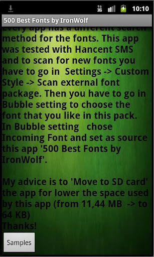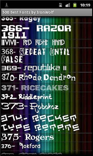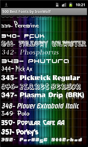 | Name: 500 Best Fonts by IronWolf Entwickler: IronWolf Preis: Größe: 11M | Version: 1.3 minimale Android Version: 1.5 oder höher Kategorie: Personalisierung Download: Look at the bottom of the page |