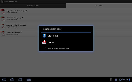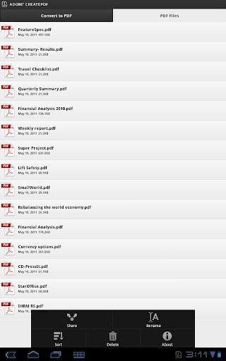 o Convert supported files from a variety of applications like email, cloud applications and others by sending them to Adobe CreatePDF using Android’s Share or Send function.