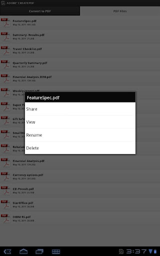 o Post on CreatePDF forum – http://forums.adobe.com/community/createpdf_mobile/android