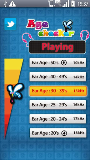 Just tap the button for the age group you want to test. Can you hear the mosquito buzz? Tap the button again to stop the sound.