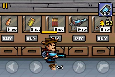 The gat and the ax are you only weapons at first. You can earn the money by killing the aliens and buy the weapons in the store to exist longer.