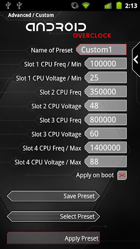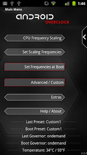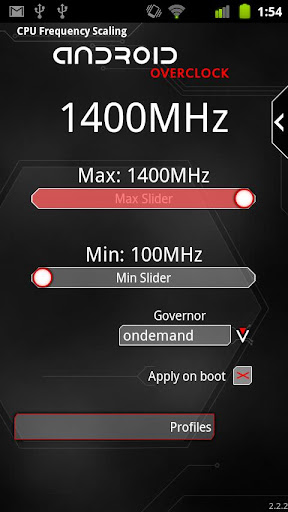 | Name: Android Overclock Entwickler: JRummy16 Preis: Größe: 1,3M | Version: 2.4.0 minimale Android Version: 2.1 oder höher Kategorie: Tools Download: Look at the bottom of the page |