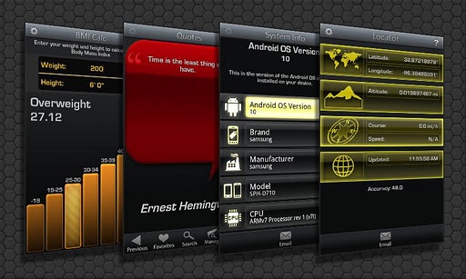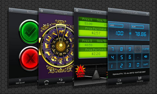 That's right, 50 apps ...ranging from lifestyle apps like Horoscope, Sleep Aid, Holiday Reference, Famous Quote Reference and Journal to tools like Bubble Level, Surface Level, Battery Life and System Info to productivity apps like Group Email, Group SMS, Journal and Checklist... and even entertainment apps like Crystal Ball, Dice Roller, Big Button, Police Scanner and more!