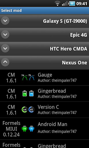 Ever wanted to change the battery icon on your rooted phone, but didn't want to change roms or flash a theme to do it? This application allows rooted users to change their battery icon on a stock, odex, rooted rom. No deodexed rom needed anymore to change your battery! This application offers Nexus S, Galaxy S, Epic 4G, Nexus One, HTC Desire HD, CDMA Hero, HTC Magic, Droid, Droid Incredible, and Samsung Intercept support, and will continue to grow to more and more phones. The app even backs up your original framework for restoration at a later point! Many icons are available, with more to come. Enjoy, and happy modding!