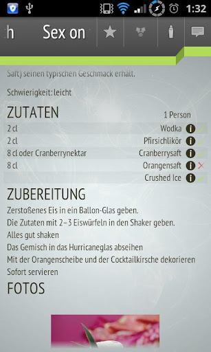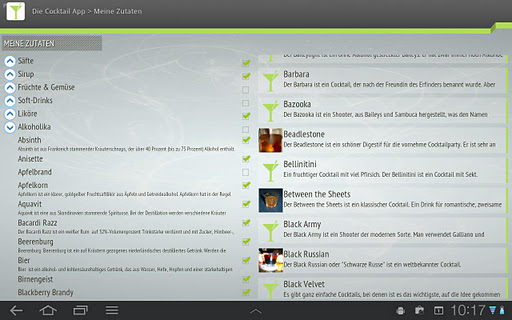 ★ "Meine Bar" - Welche Zutaten hast du? Vorhandene werden mit grünem Haken in der Zutatenliste angezeigt