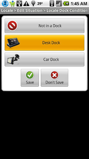 Automatically change your settings when your phone is in a car dock or desk (multimedia) dock!