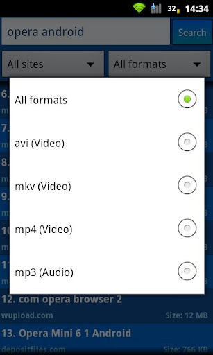 * File extension specific searches are possible, in audio (mp3) and video (avi, mkv & mp4).