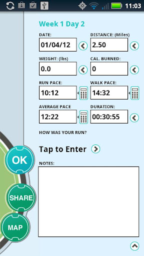 NEW: Improved Journal feature. You are not able to enter workout stats such as Average/Run/Walk Pace and Distance.