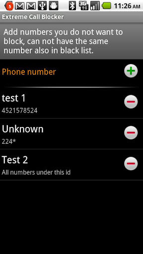* Black list: Add individual numbers to be blocked, each number can be blocked in different ways, and you can add timers to each number. Also block UNKNOWN, PRIVATE or other restricted numbers, and option to block all numbers not in contact book.
