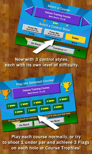 Best scores are saved for each mini golf course to add a continual challenge. Try to beat your best score.