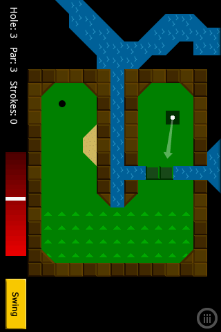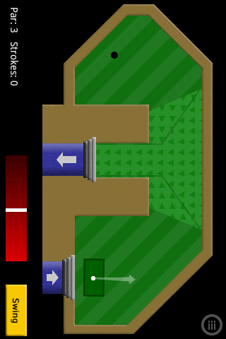 With the swipe method in this mini golf game, you use your finger to move the ball in the desired direction. Work your way past sand traps, over hills, through tunnels, and around water and other obstacles.