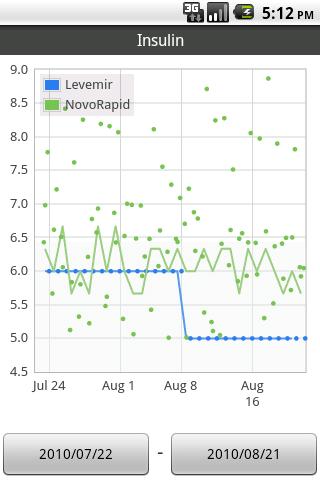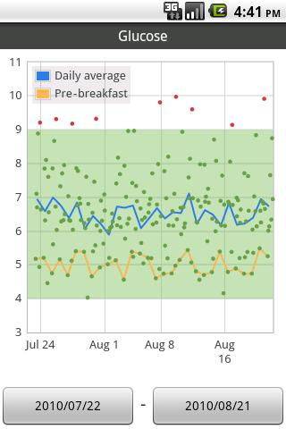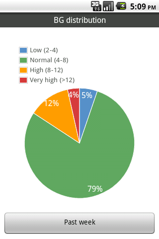 * Advanced graphing options: highlight e.g. your post-lunch values and your daily average, to get a clearer picture of your problem zones; view your BG and BP distribution on pie charts; display BMI ranges on your weight graph; and much more...