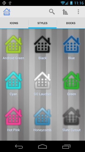 Ich beschloss, noch einen Schritt weiter gehen und fügen Sie über 140 verschiedene Arten von Icons. Jedes Symbol ist in jedem Stil in einer breiten Palette von Farben. Sie können Stile jederzeit wechseln und sogar bauen schlanke Startbildschirme, die mehrere Symbol Formatvorlagen verwenden für einige wirklich schöne Effekte. Mit diesem Zusatz transzendiert Benutzerdefinierte Launcher Icons LauncherPro und wurde wertvoll für die Nutzer des ADW Launcher, GO Launcher und den Rest der Home-Bildschirm Ersatz.