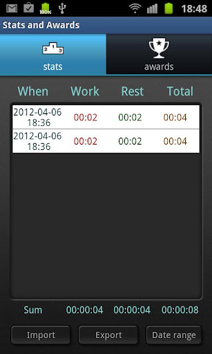 Der Interval Trainings-Timer für Android ist ein unschätzbares Tool for alle, die sich für Workout, Laufen, Radfahren, Sprint, Tabata, Gewichtheben, Boxen und vieles andere interessieren. Es erlaubt die Erstellung eines persönlichen Trainingsplans mit variierenden Rundenzahlen, Startzeiten, Runden- und Restzeiten und ebenfalls Entspannungs-Phasen nach dem Workout. Man kann ebenfalls dynamische Trainingspläne erstellen, wobei die jeweiligen Runden- und die Restzeit verlängert oder verkürzt werden können. Importiere und exportiere Deine Trainingspläne oder teile sie mit der ganzen Welt.