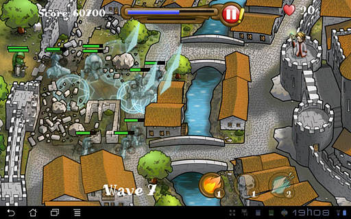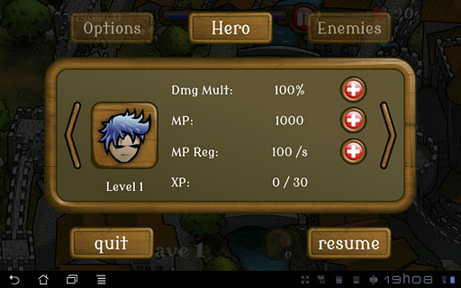 Use one of the available heroes to defend from the orc invasion in 3 different invasion episodes. You will fight in the forest, near the walls of your town and inside your town. The first two have a fixed number of enemy waves to defeat and the last one is endless, getting harder and harder as your skills increase.
