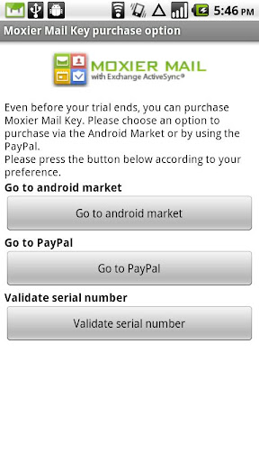 Purchase this key ONLY if you have installed and configured [Moxier Mail (Exchange) – Trial] or [Moxier Mail for Tablet – trial] - NO REFUND will be made.