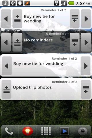 * It provides three different home screen widgets in two styles (seen all together in the first two screenshots below) so you can look through all of your reminders: