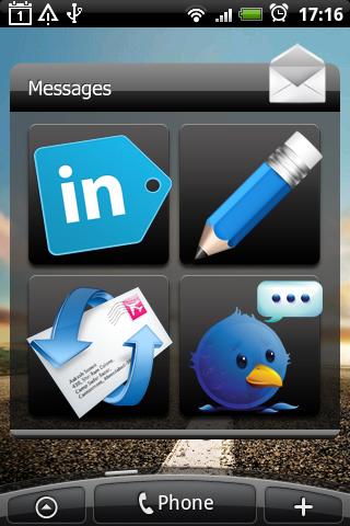 4 schöne Widgets auf Ihrem Telefon Nachrichten zu verknüpfen, E-Mail und soziale Anwendung. Die Design-Stil ist wie der HTC Sense.