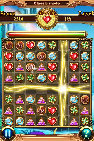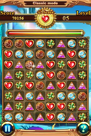 •Time race: you must match the jewels quickly before the progress bar is empty, you can control you time depend on your skill and try to get highness-score that you can.