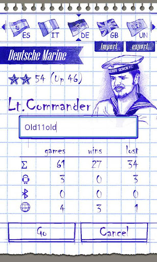 - Stars and ranks for each victory, from seaman to Admiral of the fleet.