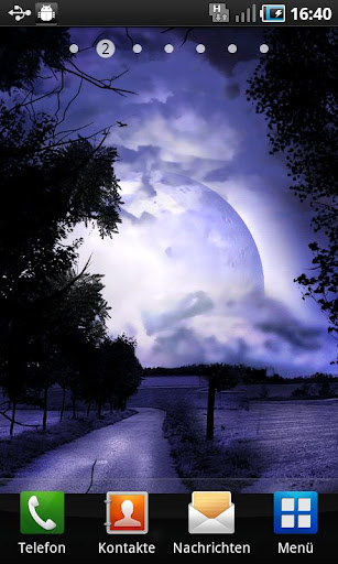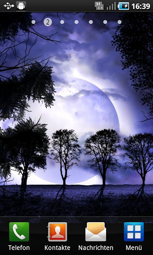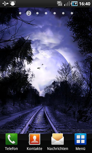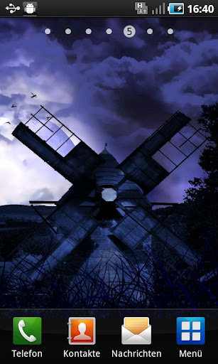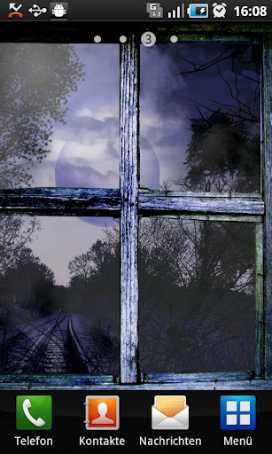 Do you like it when the night is getting stormy? The dark clouds are moving over various scenes. There is the windmill and the railroad rails which you can combine with the spooky shining moon. Take a look out of the window in the stormy night or watch the trees. Combine the various levels and create your own live wallpaper. Choose as well the different particles like the blubber which appears while touching your screen and disappear as a splash.