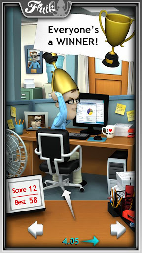 Fluik Entertainment & Big Fat Simulations, the original creators of Office Jerk, is proud to bring the iPhone hit to the Android market. Settle for nothing less. Includes ALL the goodness of the current iPhone version - the golf ball, the toy dart, the cupcake and the throwable fan!