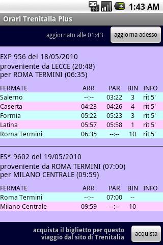 Questa versione PLUS fornisce anche gli aggiornamenti in tempo reale sui ritardi dei treni ed il pulsante per acquistare il biglietto.