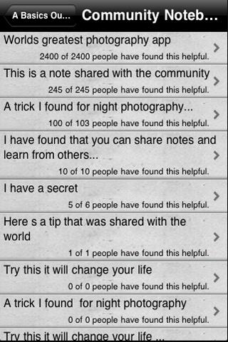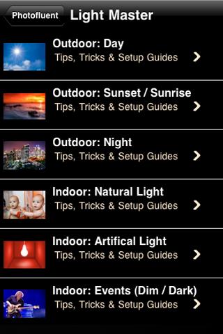Photography made easy! Hundreds of digital camera tutorial guides, Virtual Visual Guides, Thousands of Tips & Tricks, Pro Secrets, Inspiring Idea Inventor, Light Trainer, Global Notes, Composition, Gear, Step by Step camera setup. Its like having a professional photographer at your side! Fantastic reference tool in your pocket for all situations! Improve, Learn and Grow your photography skills!