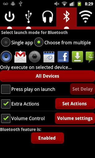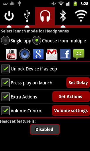 Once installed, specify which applications you want to launch when the respected cable or service is connected, and also set up any extra actions or volume control you want.