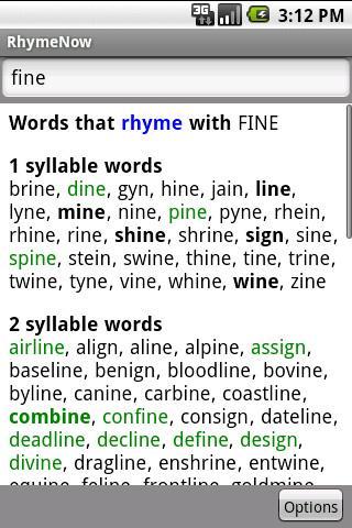 RhymeNow is the only true English-language rhyming dictionary for Android.