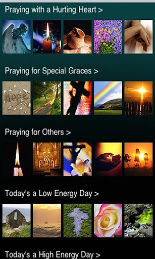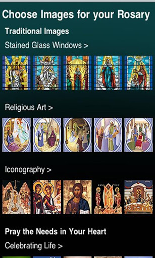 • 18 sets of images to choose from for visual meditation while praying: vibrant photos, stained glass windows, icons, and religious art