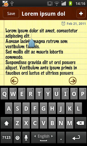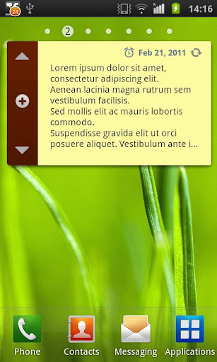 * Alarm reminders. For every note you can add a reminder. You'll be notified, by a system popup and with a vibration and a sound beep.