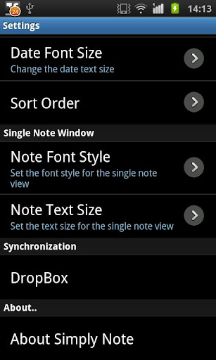 * Dropbox synchronization. Just login into your dropbox account, from the preferences panel, and start sync your notes accross different devices.
