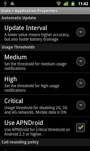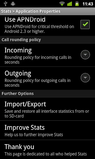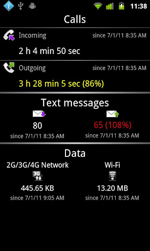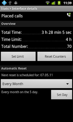 Mit Stats behältst du den Überblick über die Verwendung deines Android Telefons, aufgetrennt in Anrufe, SMS und Daten.