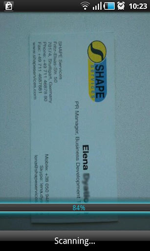 Business Card Reader (BCR) is the leading business card scanning app for Android, iPhone and Blackberry. If you live active business and social life, contact partners, conduct negotiations, make business deals, you usually exchange business cards. Eventually you get tons of business cards and it becomes difficult to store, search and remember important contacts. Now with Business Card Reader you can scan them to your Android phone!
