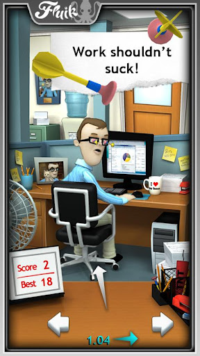 Fluik Entertainment & Big Fat Simulations, the original creators of Office Jerk, is proud to bring the iPhone hit to the Android market. Settle for nothing less. Includes ALL the goodness of the current iPhone version - the golf ball, the toy dart, the cupcake and the throwable fan!